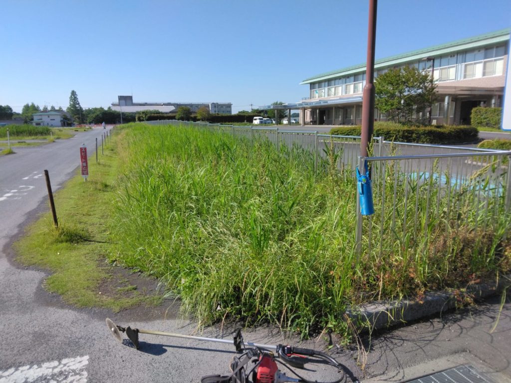 私も微力ながら、所用があった為職員より早く作業開始(7:30~)約2時間、農作業で鍛えた草刈セミプロ級の腕前を発揮しました?