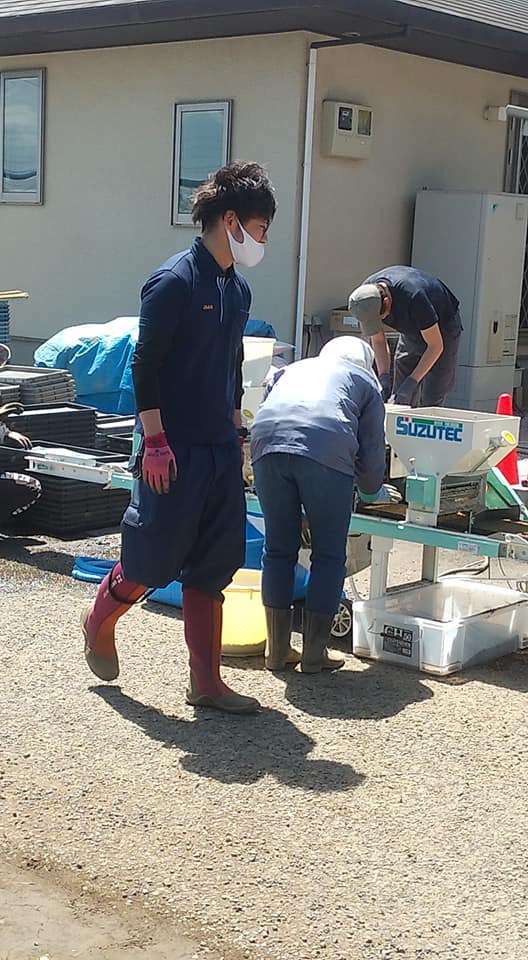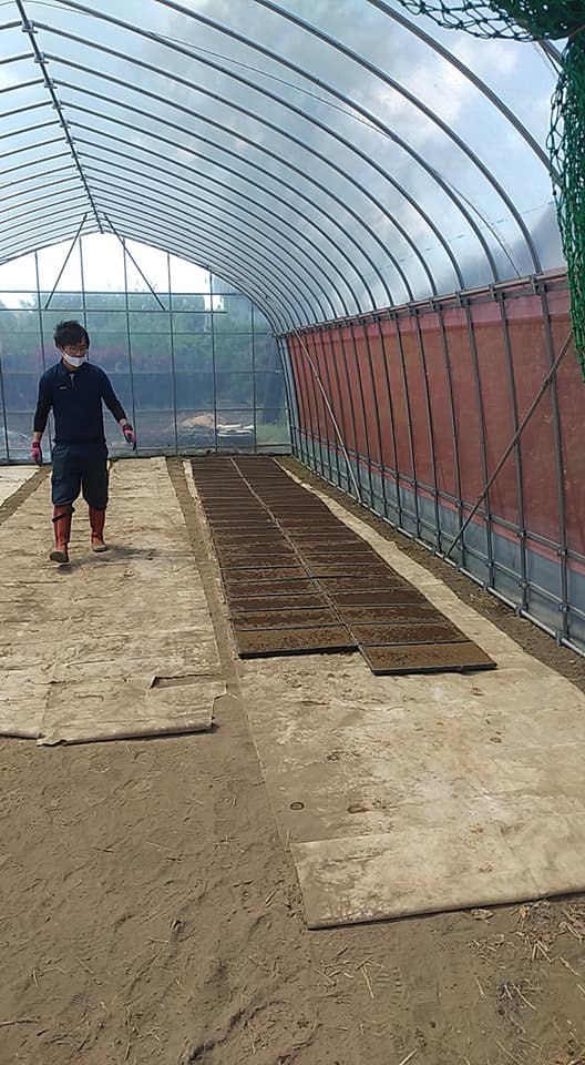 今日は、新しいチャレンジをする為にJA南彩(戸ヶ崎さん)の技術指導の下種蒔き実施。(苗箱を並べて直に育苗シートをかけるのみ)今までに無く、省力化が図れました。