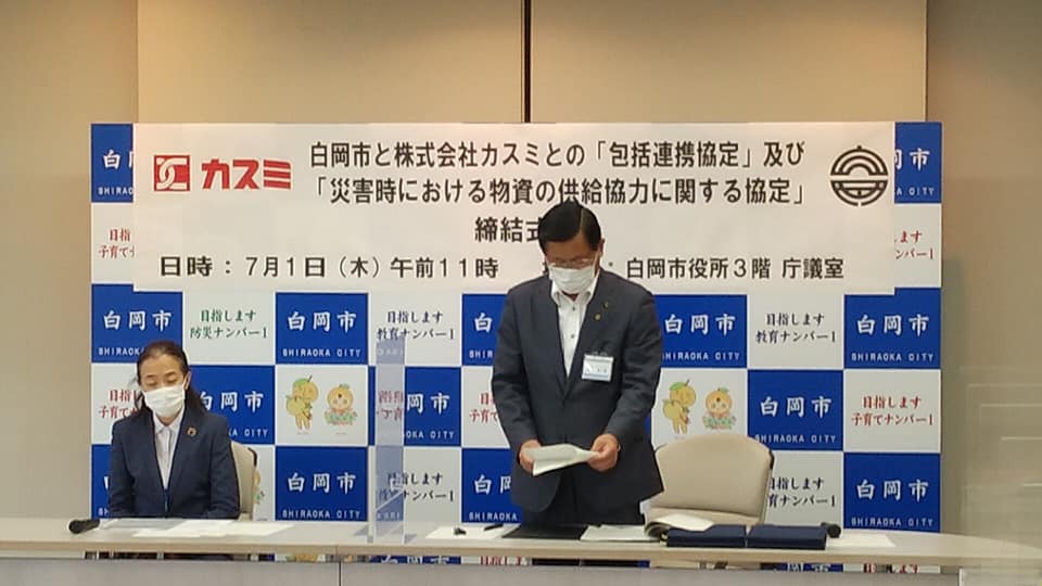 株式会社カスミ様と白岡市において「包括連携協定」及び「災害時における物資の供給協力に関する協定」を締結しました。