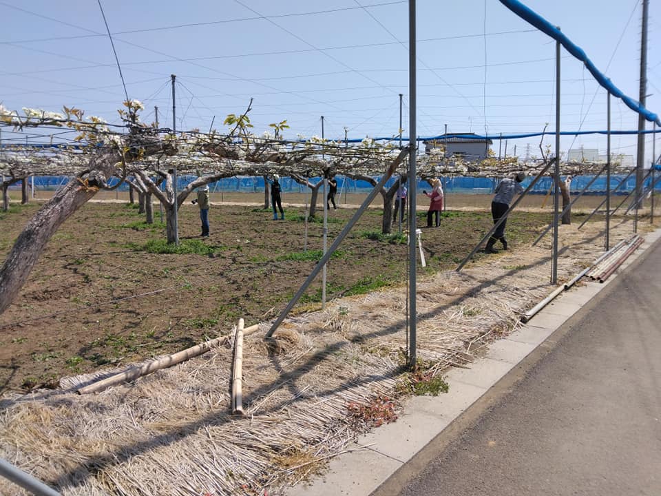 好天に恵まれて初夏の陽気の中、梨の交配作業これからが作業本番!