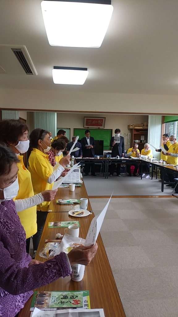 会の始めに、「長崎の鐘」「鐘の鳴る丘」を