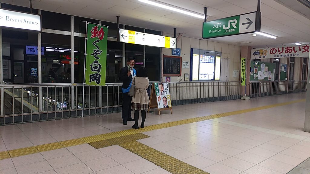 ふじい栄一郎 白岡駅 駅立