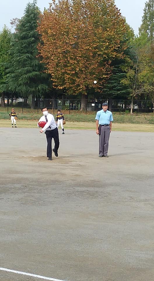 役員の方が大会成績の報告と始球式ボールを届けて下さいました。ありがとうございました。