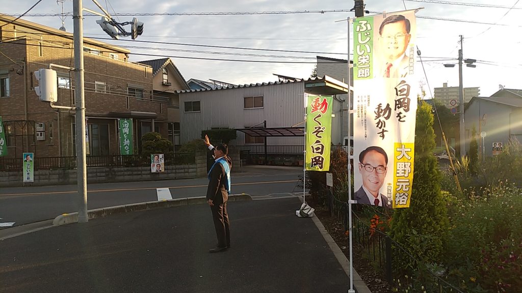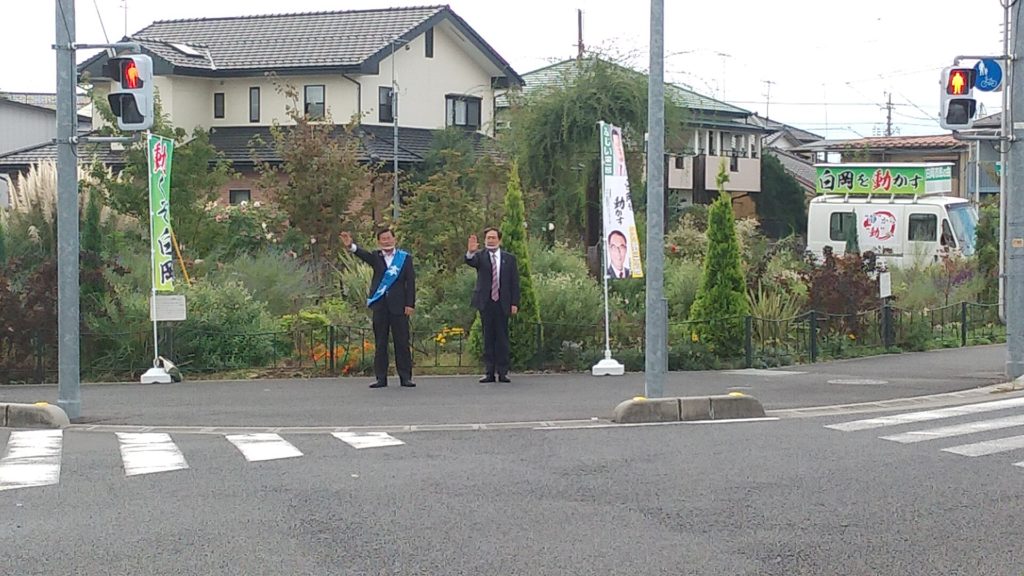 締めくくりは、働き盛りの皆さんへ駅頭で元気いっぱいご挨拶。