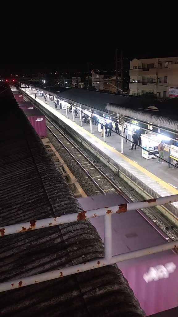 夜、白岡駅にて[運行遅延の中]ご挨拶。