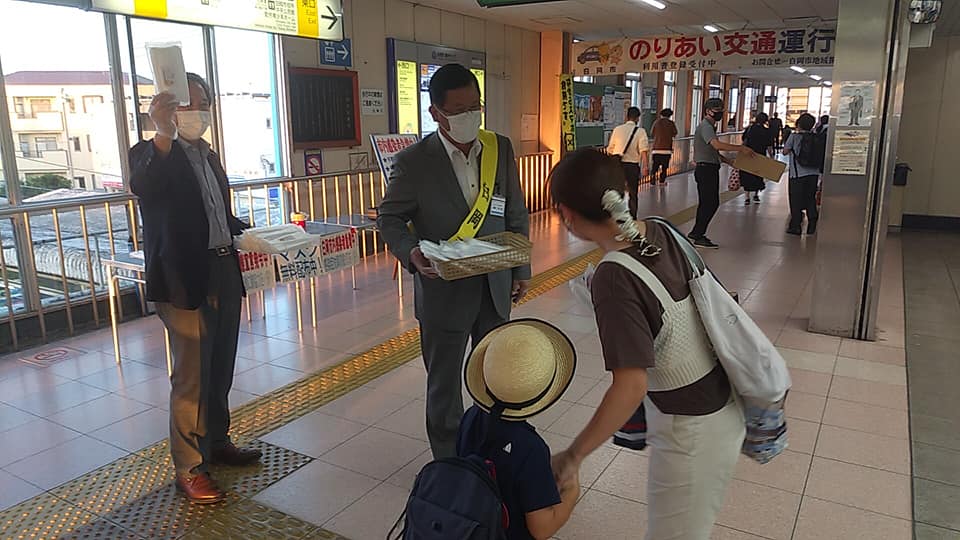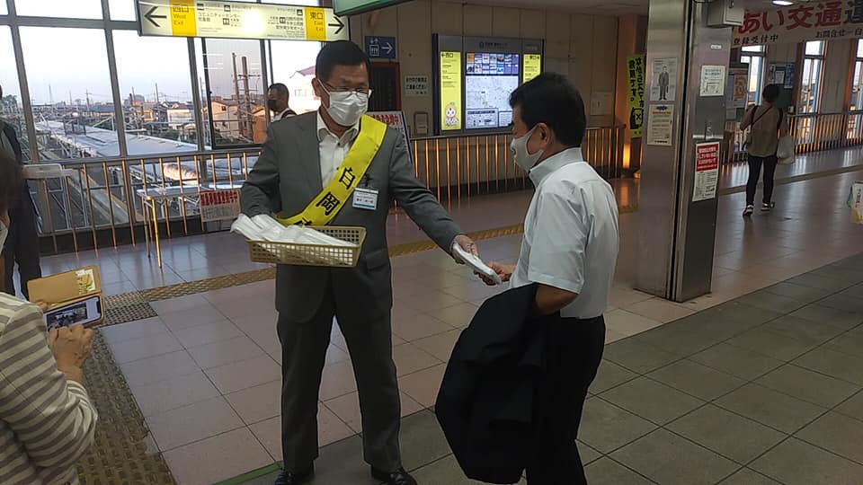 白岡駅、新白岡駅にて『マスクの配布と感染防止対策の徹底』をお願いしました。